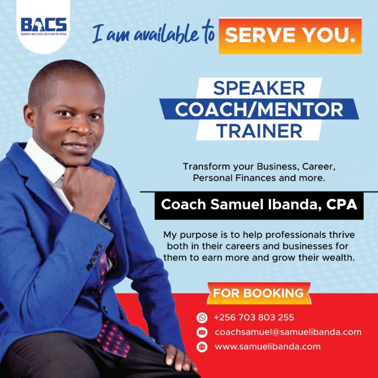 Coach Samuel is passionate at inspiring Professionals to go after their dreams and attain financial freedom. He is the founder of Business and Career Solution Hub Africa, one of East Africa’s leading personal development mentorship platforms with a membership of professionals from over 37 countries. He uses the platform to coach and mentor members on life skills, personal finance, career development, business development etc.